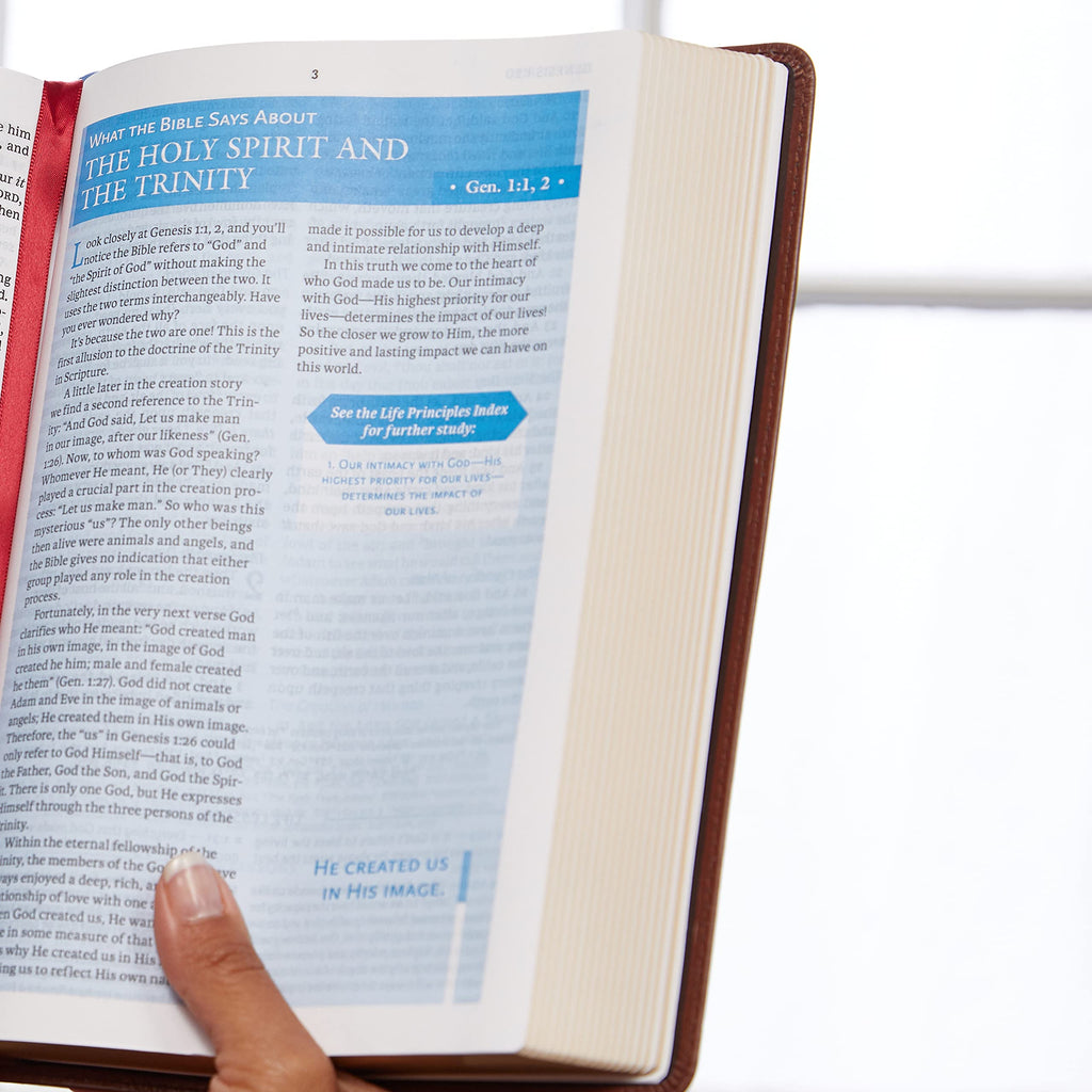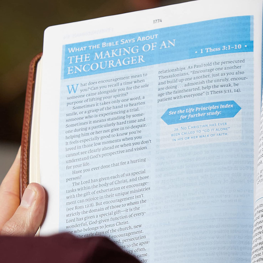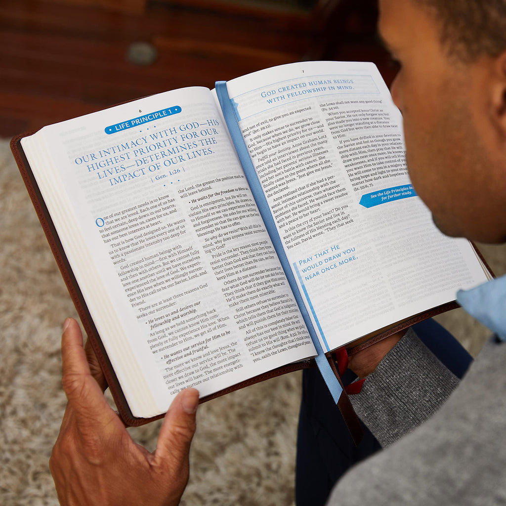 Pastor Charles Stanley provides a wealth of principles to be applied practically as you read and study God’s Word.The Charles F. Stanley Life Principles Bible, with over a million sold to date, is designed to lead believers into a life-changing relationship with Jesus Christ, and to help them experience the Good News about God’s mighty kindness and love. The updated second edition is the best way to experience this bestselling classic-with a completely new design featuring our easy-to-read Comfort Print typeface, 100 specially designed maps and charts that bring biblical places and themes to life, and over 43,000 cross references to enrich your study of the Word.Features include: 30 Life Principles articles highlight Dr. Stanley’s essentials for Christian living More than 2,500 Life Lessons verse notes bring to life the practical and personal nature of God’s Word to us A listing of over 300 verses revealing God’s promises throughout the Bible that encourage, strengthen, and bring hope Answers to Life's Questions and What the Bible Says About articles bring scriptural insight to bear on topics of special importance to every believer Topical indexes give immediate access to hundreds of life-giving principles and promises throughout the Old and New Testaments Book introductions provide an overview of the themes and literary structure of each book and alert readers to important principles they’ll encounter as they read New for the 2nd Edition, 100 maps and charts that help important biblical places and themes come alive and over 43,000 cross references to enrich your study Exclusive NASB Comfort Print® typeface Easy-to-read 10-point print size