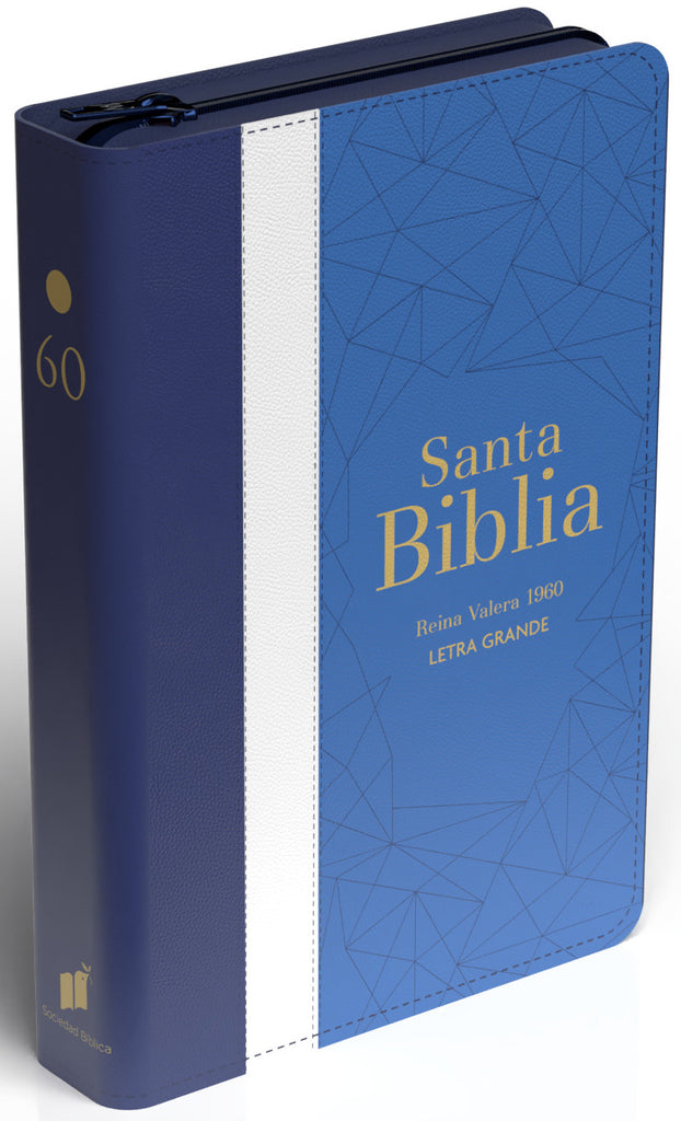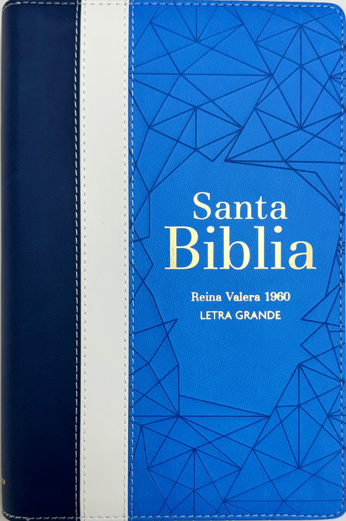 Biblia RVR 1960 Letra Grande Tamaño Manual Tricolor Azul Crema Azul Marino con Cierre e Índice