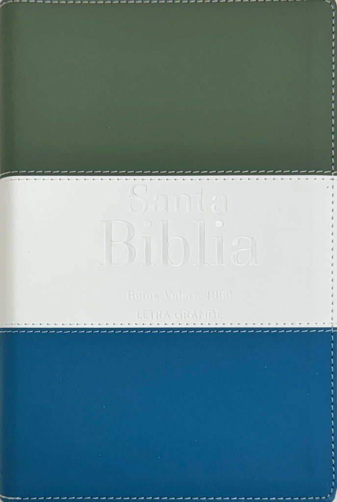 Biblia RVR 1960 Letra Grande Tamaño Manual Tricolor Gris Crema Azul con Cierre e Índice