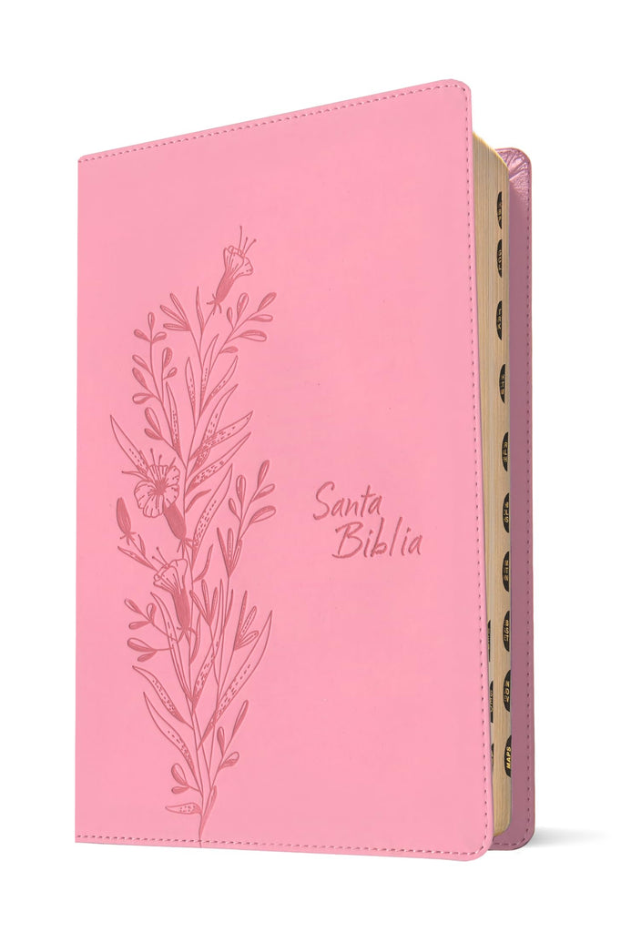 Biblia NTV Referencia Central Letra Grande con Filament Símil Piel Rosa Índice Letra Roja
