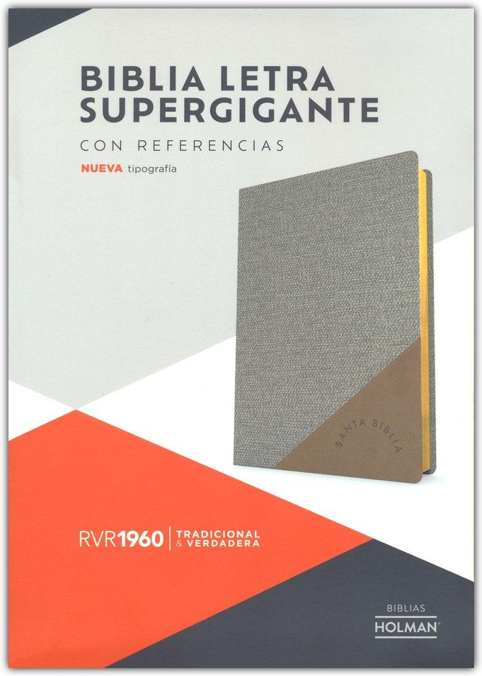 La Biblia de letra súper gigante es nuestra edición más fácil de leer. Es ideal para la lectura o estudio sin esfuerzo. El tamaño de letra de 17 puntos, diseñado exclusivamente para Biblias Holman, es el doble del tamaño promedio de otras Biblias. Las referencias y ayudas adicionales son el complemento perfecto al texto de la Reina-Valera 1960, la versión preferida en español. Esta Biblia le permite disfrutar plenamente de la lectura de la Palabra. Características: Referencias en cadena Concordancia temática Panorama histórico de la Biblia Plan de lectura anual Buenas nuevas de salvación Palabras de Cristo en rojo. Introducción y bosquejo de cada libro Armonía de los Evangelios Mapas a todo color Atributos de Jesús Palabras de aliento para tu caminar con Dios "