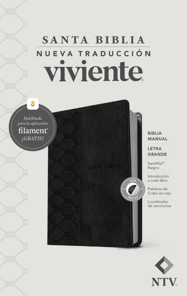 La experiencia de lectura de la Biblia ¡llevada al siguiente nivel!La nueva Biblia manual NTV con Filament de Tyndale ofrece un texto legible, un diseño atractivo en una Biblia con un tamaño fácil de transportar. Esta edición es ideal para la lectura desde el púlpito y conveniente para la lectura persona. Y aunque tiene el mismo precio cómodo de las Biblias básicas de texto, la Biblia manual NTV ofrece mucho más, al incluir la innovadora aplicación «Filament Bible». Esta aplicación le permite utilizar su teléfono móvil o tableta para conectar cada página a una amplia gama de contenido relacionado con la Biblia.La aplicación «Filament Bible» convierte esta Biblia de texto en una poderosa herramienta devocional y de estudio que lo ayudará a aprovechar al máximo su tiempo en la Palabra de Dios y mejorar su experiencia de lectura.Lo mejor es que no hay ningún costo adicional, ya que la aplicación «Filament Bible» es un Valor agregado a nuestra Biblia sin costo alguno para usted. Y por supuesto, usted puede utilizar esta Biblia con o sin la aplicación, pero cuando quiera profundizar más en la lectura de las Escrituras, simplemente tome su teléfono o su tableta, abra la aplicación «Filament Bible» y descubra un mundo de conocimiento e inspiración. Es muy fácil de usar.Sus características especiales incluyen: El texto claro, cálido y comprensible de la Nueva Traducción Viviente Palabras de Cristo en rojo Introducción a cada libro Localizador de versículos de Tyndale Mapas a todo color Página de presentación Letra Grande de 12 puntos Encuadernación duradera Habilitada para la aplicación Filament, que provee contenido adicional en cada página Amplifique su estudio bíblico con la aplicación Filament, y descubra un mundo de conocimiento e inspiración al alcance de su mano, ¡completamente gratis!La aplicación «Filament Bible» es su puerta de entrada a una experiencia de estudio bíblico más profunda y enriquecedora. Cada página de su Biblia conecta de manera fácil y conveniente a toda una colección de recursos relacionados, que incluyen: Alrededor de 25.000 notas de estudio, escritas por más de 40 eruditos bíblicos, que ofrecen una comprensión más profunda de las Escrituras Más de 100 videos que proveen información clave sobre el trasfondo y el significado de la Biblia Más de 30 mapas e infografías que explican la geografía y el trasfondo cultural de la Biblia Cientos de perfiles biográficos y artículos temáticos que revelan a las personas y las historias detrás de los versículos, enriqueciendo su conexión con el texto bíblico 2000 artículos devocionales que proporcionan inspiración diaria y numerosas oportunidades para la reflexión diaria Planes de lectura para guiar su viaje a través de las Escrituras La Biblia en audio que hace posible un acercamiento fresco a la Palabra de Dios en cualquier momento y en cualquier lugar Una biblioteca de música de adoración perfecta para escuchar durante su estudio personal o para inspirar la adoración a lo largo del día Solo tome su dispositivo móvil o su tableta, abra la aplicación «Filament Bible» y deje que comience el aprendizaje. Es simple, conveniente y extremadamente enriquecedora.Esta hermosa Biblia en blanco y dorado fue creada especialmente para conmemorar bodas, aniversarios, compromisos o cualquier otro evento importante. Es un regalo perfecto para su propia celebración o la celebración de un amigo o familiar.La Nueva Traducción Viviente es una traducción de la Biblia clara y precisa. Es fácil de comprender, y transmite el significado preciso de los idiomas originales en un estilo de escritura fluido y natural que promueve una lectura significativa y accesible.