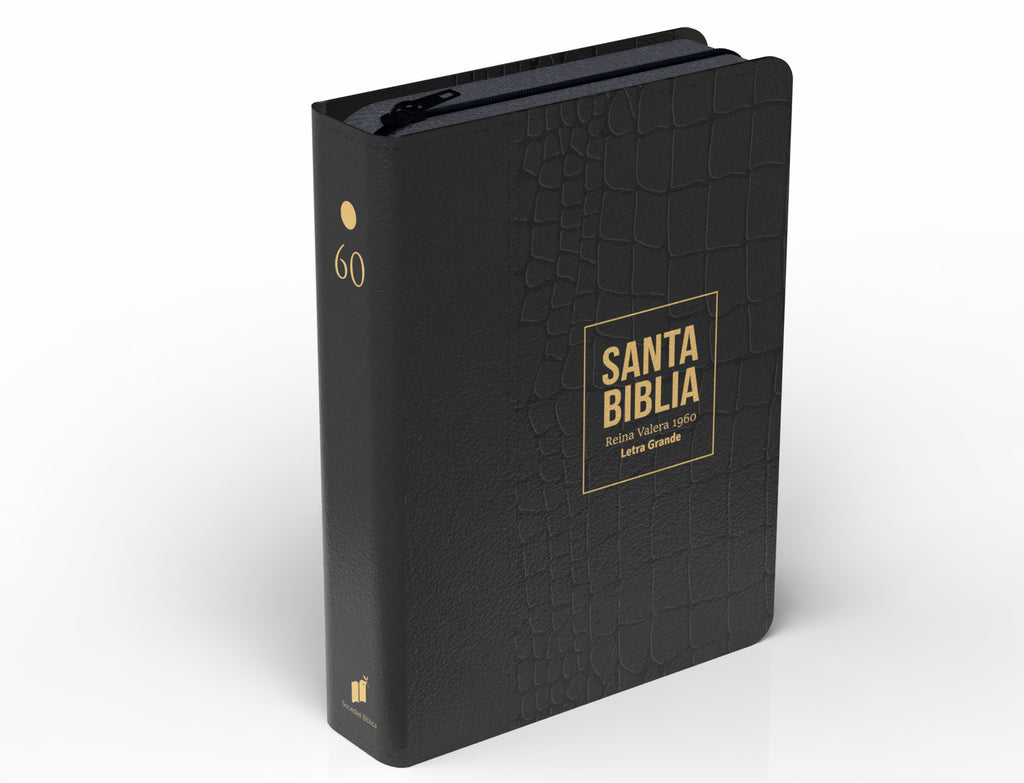 Biblia RVR 1960 Compacta Letra Grande 11 puntos Símil Piel Piel Negro con Cierre y Índice