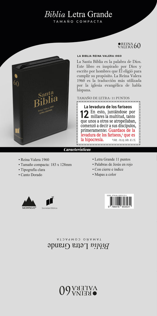 - Tamaño compacto, letra grande, en una Biblia fácil de llevar