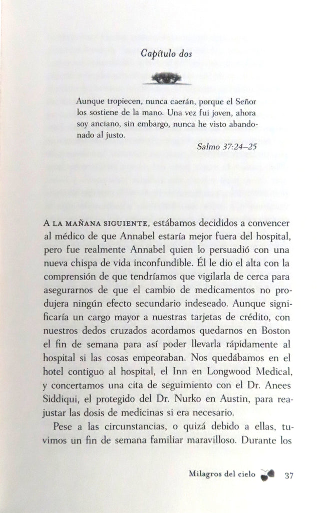 ¿Cómo podemos explicar lo imposible? para Christy y Kevin Beam, la fe significaba poner un pie delante del otro, ya que vivían la vida a la sombra de su hija mediana Annabel y su devastadora enfermedad. Diagnosticada con un trastorno incurable, que amenazaba su vida, la pequeña Anna perseveró a través de años de dolor, pruebas y tratamientos invasivos. Cuando Anna tuvo un accidente que casi le quita la vida, la familia Beam pensó que todo se volvería peor para ella. En los días siguientes, sin embargo, Anna compartió en silencio una historia impresionante sobere cómo visitó el cielo, conoció a Jesús, y fue guiada por la luz de un ángel guardián. Pero el mayor de los milagros estaba por comenzar, un milagro médico bien documentado que ha dejado desconcertado a los especialistas y lo dejará inspirado a usted. Las memorias edificantes de Christy Beam son un testimonio de fe y familia, y un bálsamo de paz para cualquier alma que ansia conocer la realidad del gran poder del amor de Dios. About the Author Christy Wilson Beam nació y se crió en Abilene, Texas. Es graduada de la Harding Simmons University con un grado en educación y una especialidad en lectura. Christy vive cerca de Burleson, Texas con su esposo y sus tres hijas. Conozca más sobre ellos visitando su página web www.ChristyBeam.com.