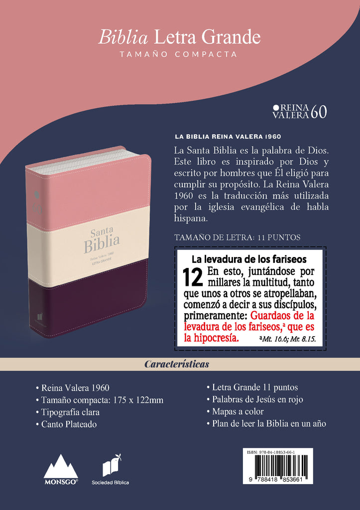 - Tamaño compacto, letra grande, en una Biblia fácil de llevar
