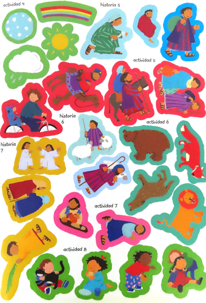 Esta serie de libros contiene historias b blicas para ni os mayores de 3 a os. Ofrece adem s actividades con brillantes calcoman as que vienen inclu das en cada libro. Los ni os aprender n las lecciones b blicas mientras juegan con las actividades del libro. This book series contains Bible stories for children 3+ years old. It also offers activities with bright stickers bound into the book. Children will learn the Bible lessons while they play with related activities.