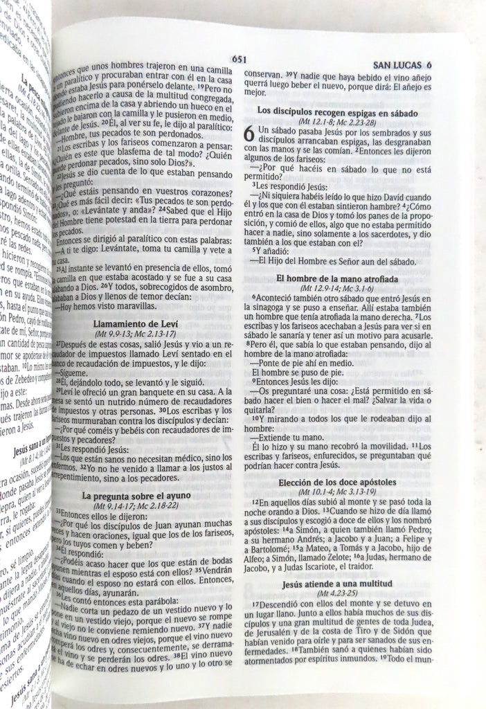 Reina Valera es una Biblia clásica del protestantismo que tiene como lengua el español. Gracias al excelente trabajo que han realizado los biblistas, lingüistas, estilistas y teólogos que han participado en esta revisión se ha conseguido un texto fluido, ágil, en buen castellano actual (con más de 18.000 vocablos), y que sigue conservando el aroma propio y característico de la Biblia Reina Valera de siempre, pero lista para ser leída y entendida por nuestra generación y la venidera. MATERIAL ADICIONAL: Cómo leer la Biblia Qué dice la Biblia acerca del perdón Cómo encontrar ayuda en la Biblia Plan para leer la Biblia en un año Tabla de pesas, medidas y monedas Calendario hebreo Mapas.