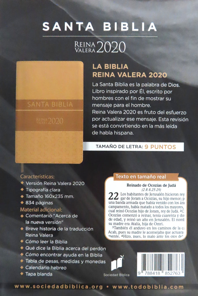 Reina Valera es una Biblia clásica del protestantismo que tiene como lengua el español. Gracias al excelente trabajo que han realizado los biblistas, lingüistas, estilistas y teólogos que han participado en esta revisión se ha conseguido un texto fluido, ágil, en buen castellano actual (con más de 18.000 vocablos), y que sigue conservando el aroma propio y característico de la Biblia Reina Valera de siempre, pero lista para ser leída y entendida por nuestra generación y la venidera. MATERIAL ADICIONAL: Cómo leer la Biblia Qué dice la Biblia acerca del perdón Cómo encontrar ayuda en la Biblia Plan para leer la Biblia en un año Tabla de pesas, medidas y monedas Calendario hebreo